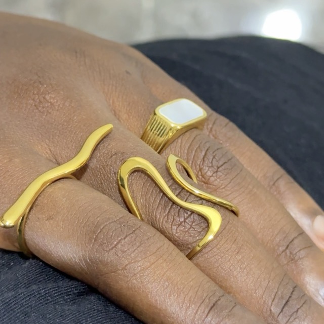 Hypoallergenic | Stainless steel | Water-resistant | Tarnish-Resistance | Adjustable to fit size 6 and above | Available in Gold | Smooth polished finish | Minimalist design | Comfortable fit | Stackable | Easy to clean